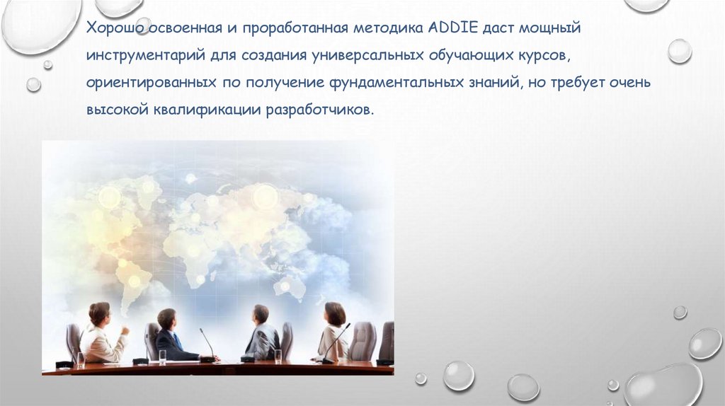 Хорошо освоенная и проработанная методика ADDIE даст мощныйинструментарий для создания универсальных обучающих курсов,