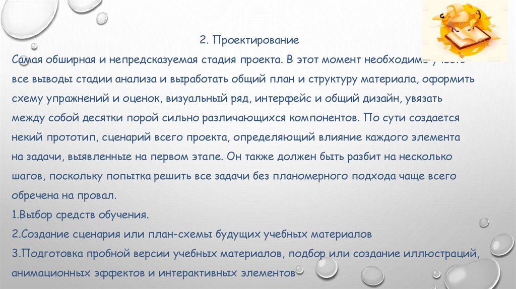 Процесс проектирования учебных материалов по многим параметрам