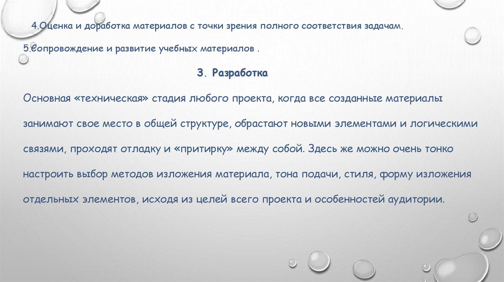 3 4.Оценка и доработка материалов с точки зрения полного соответствия задачам.5.Сопровождение и развитие учебных материалов..