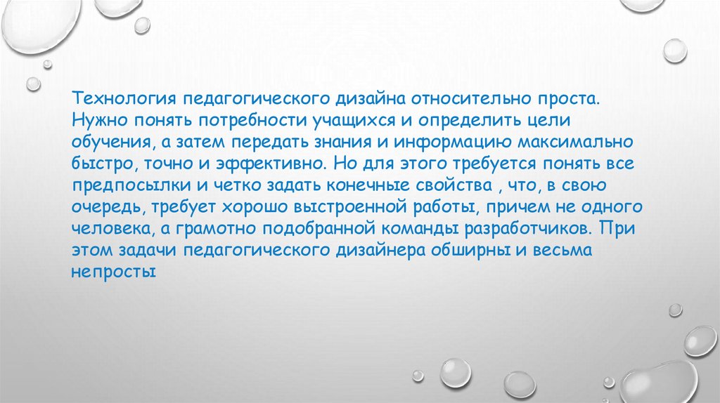 Технология педагогического дизайна относительно проста.Нужно понять потребности учащихся и определить цели