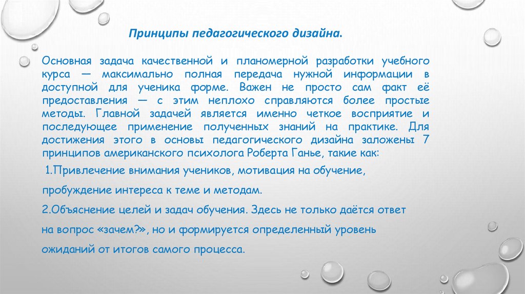 Принципы педагогического дизайна.Основная задача качественной и планомерной разработки учебного