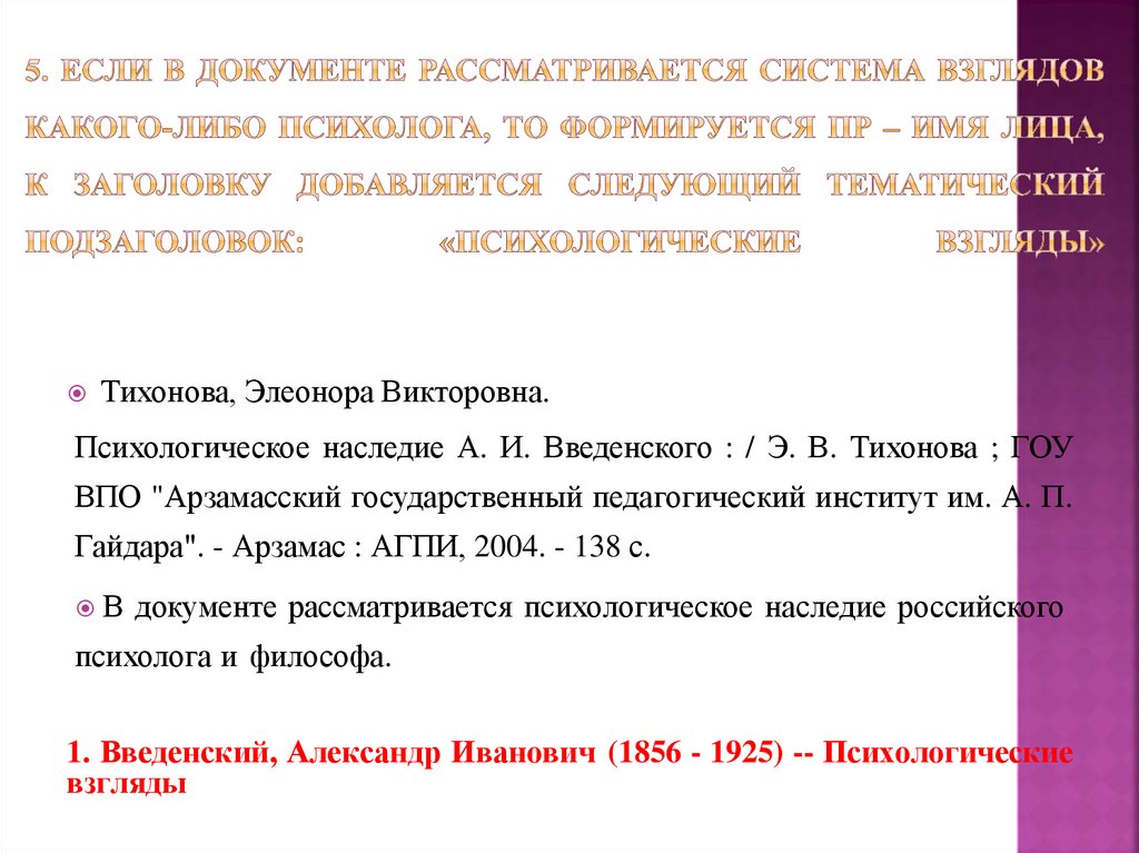 Тихонова, Элеонора Викторовна.Психологическое наследие А. И. Введенского : / Э. В. Тихонова ; ГОУ