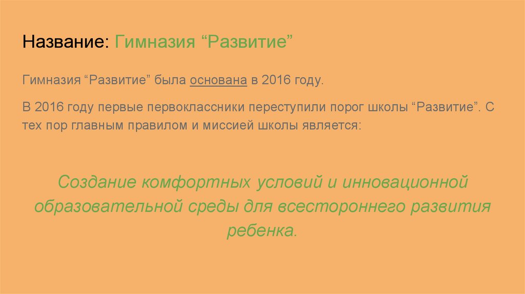 Название: Гимназия “Развитие”Гимназия “Развитие” была основана в 2016 году.