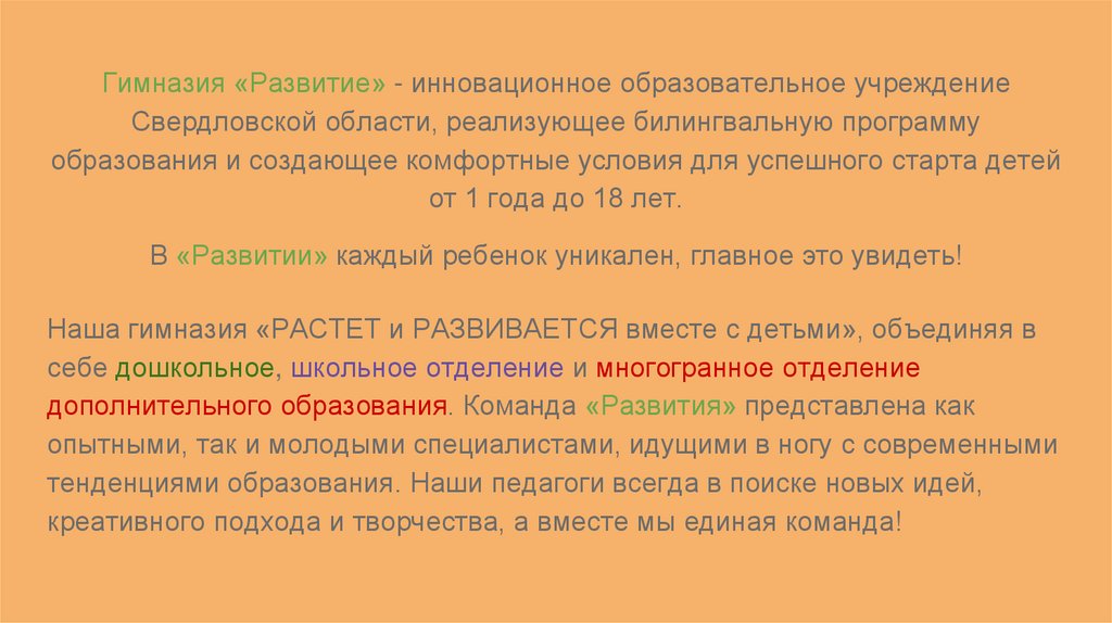 Гимназия «Развитие» - инновационное образовательное учреждениеСвердловской области, реализующее билингвальную программу