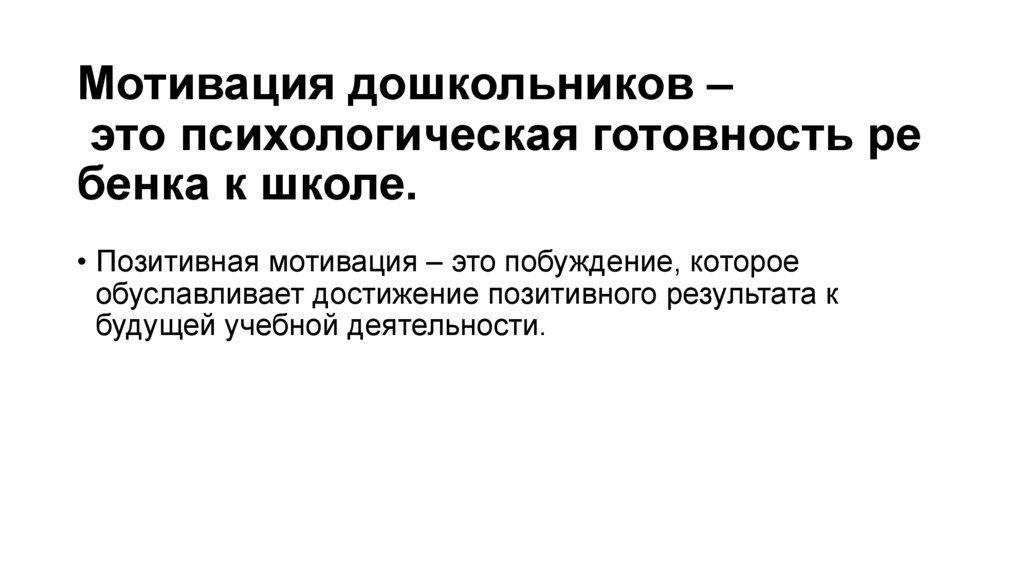 • Мотивация дошкольников – это психологическая готовность