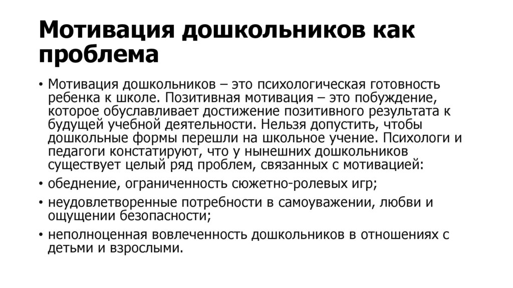 Мотивация дошкольников –это психологическая готовность ре