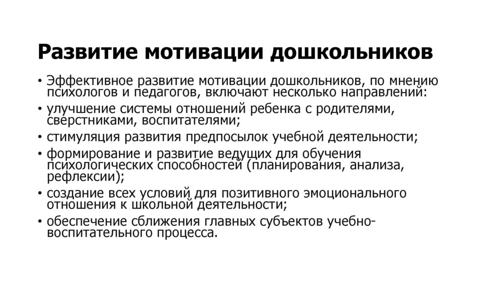 Развитие мотивации дошкольников• Эффективное развитие мотивации дошкольников, по мнению