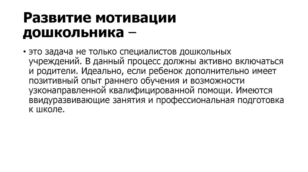 Развитие мотивациидошкольника –