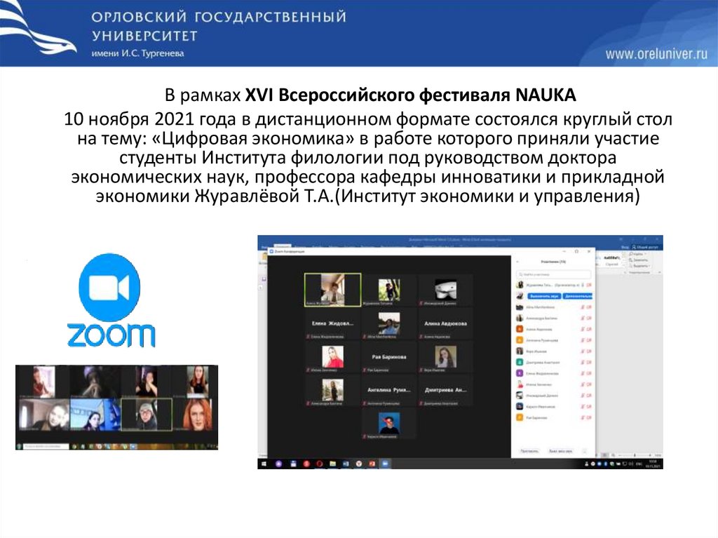 В рамках XVI Всероссийского фестиваля NAUKA10 ноября 2021 года в дистанционном формате состоялся круглый стол