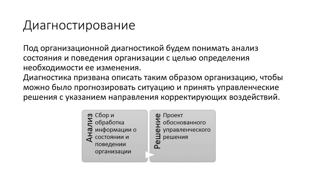 ДиагностированиеПод организационной диагностикой будем понимать анализ