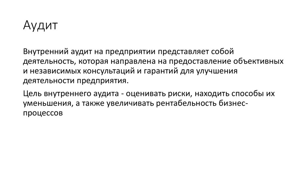 Цель внутреннего аудита - оценивать риски, находить способы их