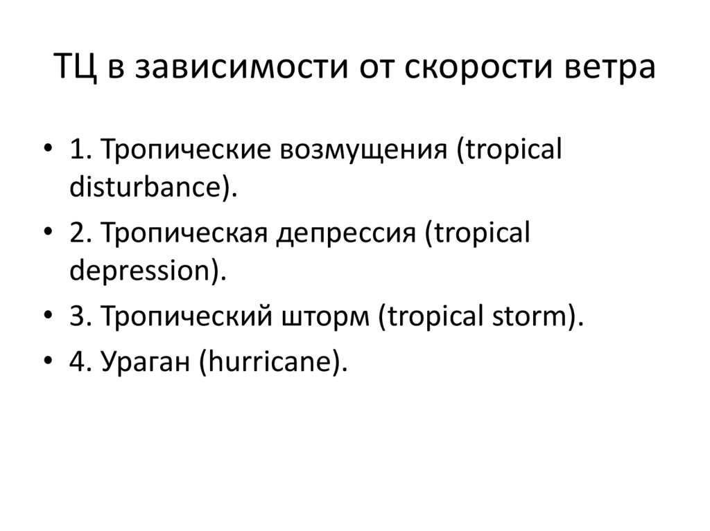 ТЦ в зависимости от скорости ветра• 1. Тропические возмущения (tropical
