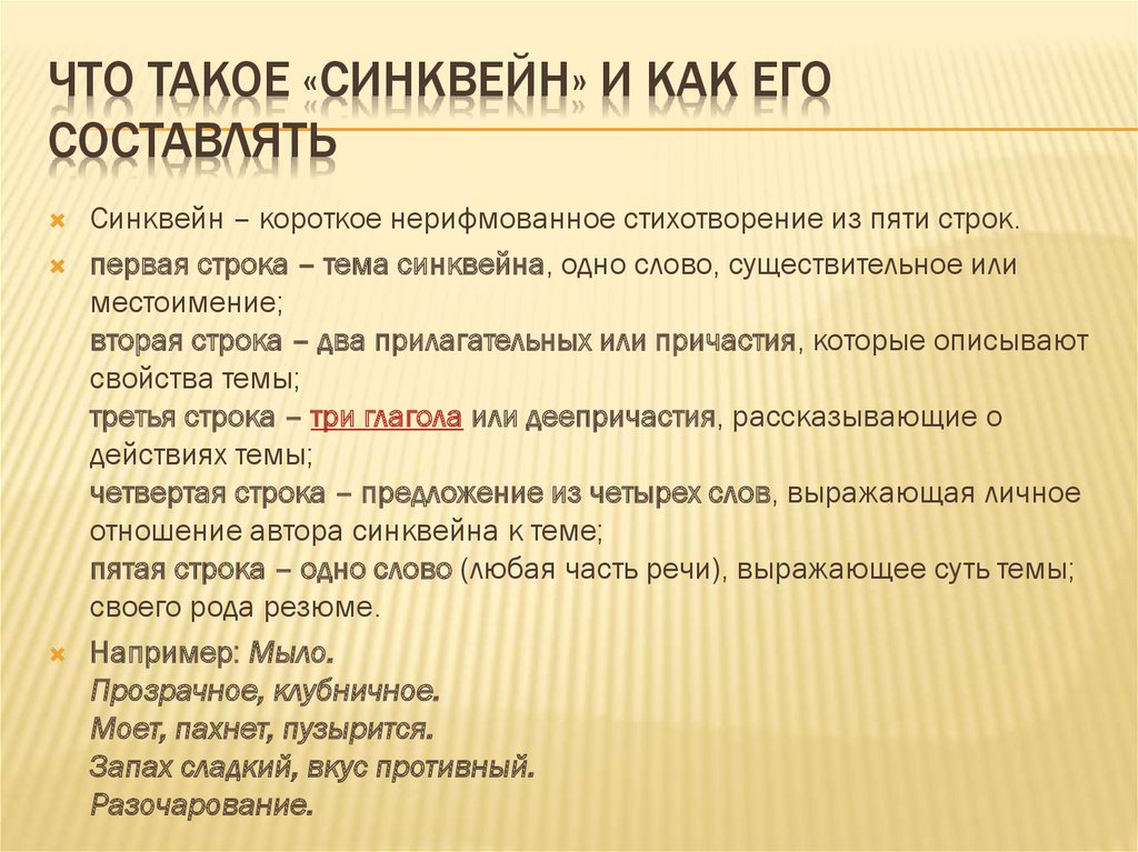 ЧТО ТАКОЕ «СИНКВЕЙН» И КАК ЕГОСОСТАВЛЯТЬ