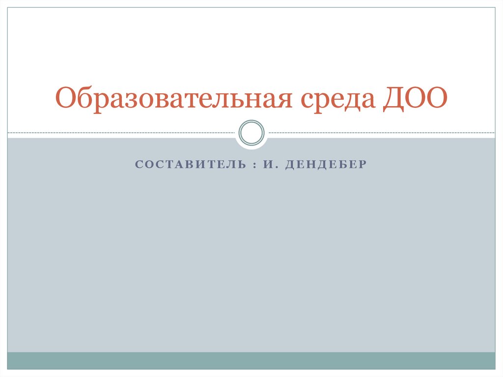 Образовательная среда ДООСОСТАВИТЕЛЬ : И. ДЕНДЕБЕР