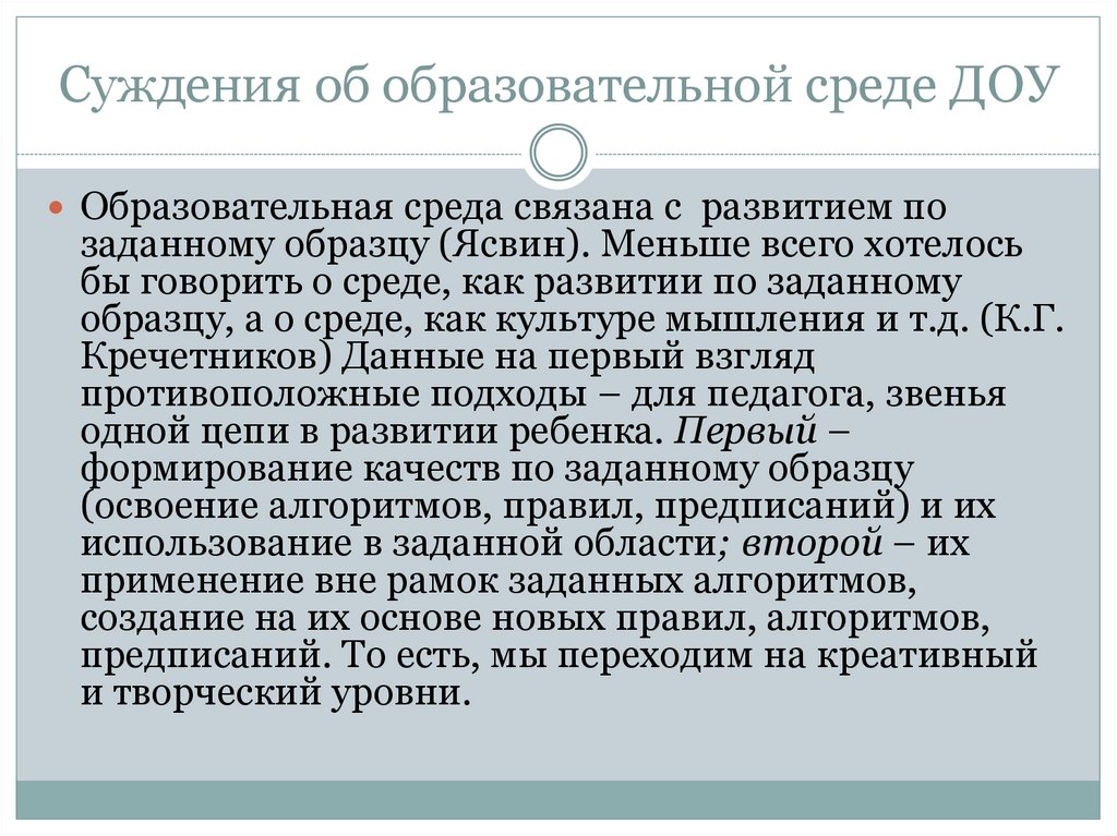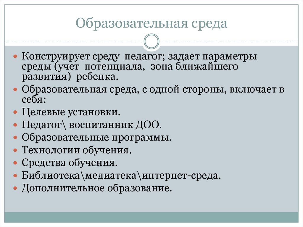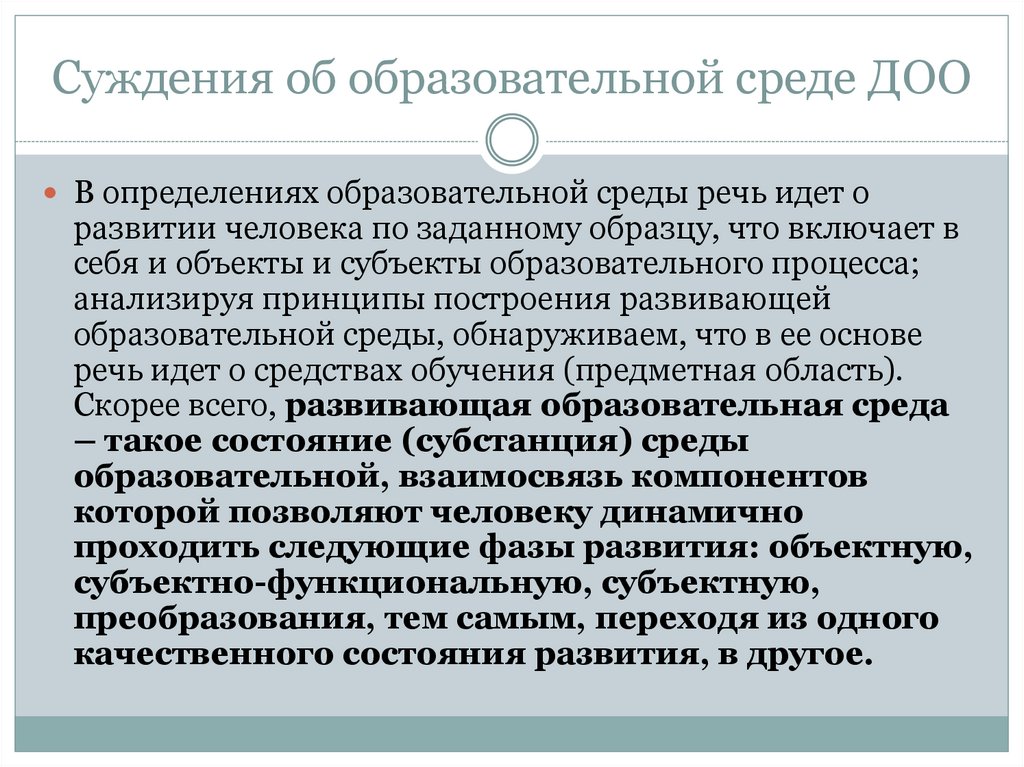 Суждения об образовательной среде ДООВ определениях образовательной среды речь идет о