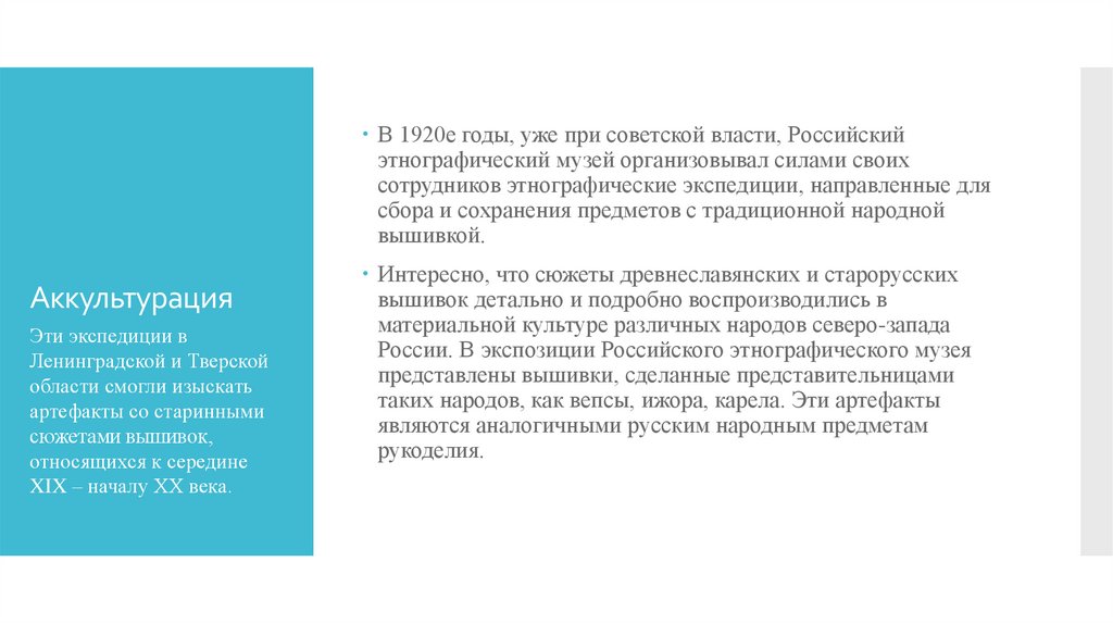 В 1920е годы, уже при советской власти, Российскийэтнографический музей организовывал силами своих