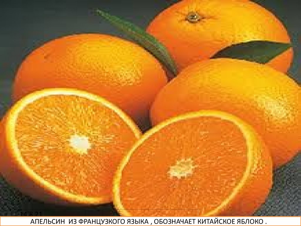 14.8.21АПЕЛЬСИН ИЗ ФРАНЦУЗКОГО ЯЗЫКА , ОБОЗНАЧАЕТ КИТАЙСКОЕ ЯБЛОКО .