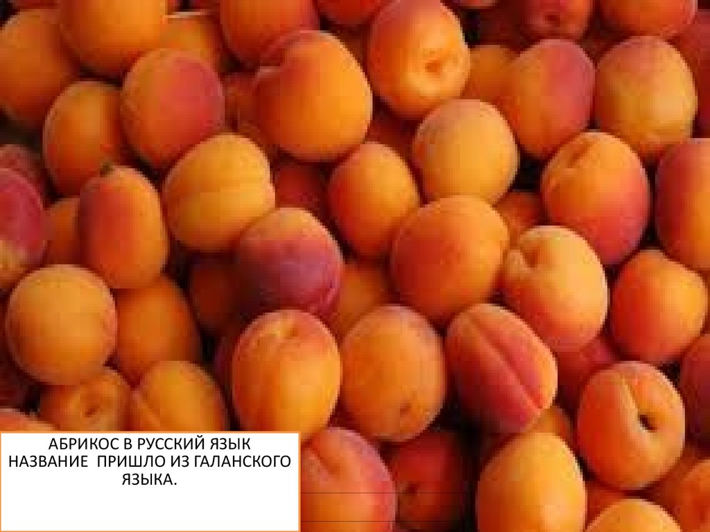 АБРИКОС В РУССКИЙ ЯЗЫКНАЗВАНИЕ ПРИШЛО ИЗ ГАЛАНСКОГО