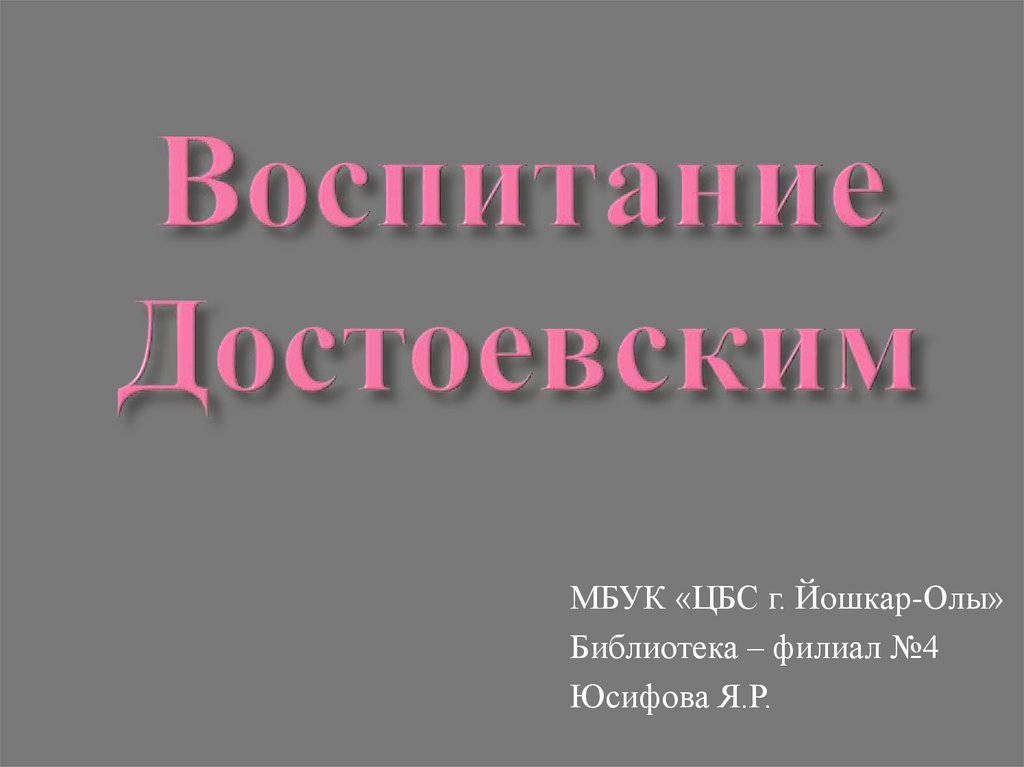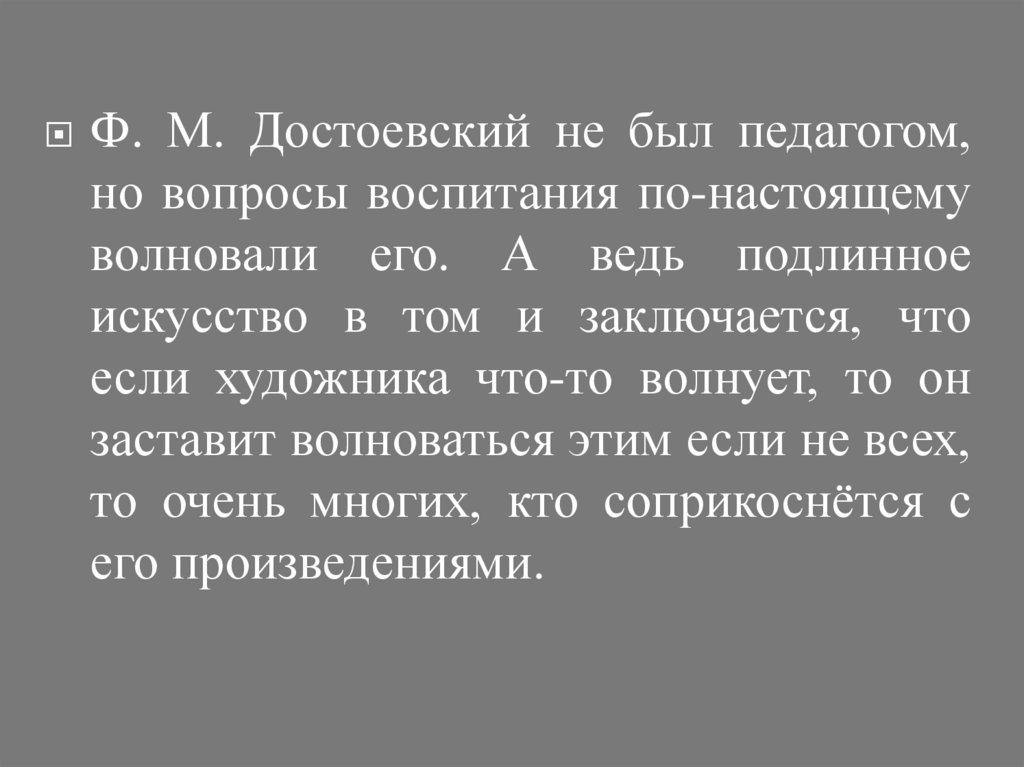 Ф. М. Достоевский не был педагогом,но вопросы воспитания по-настоящему