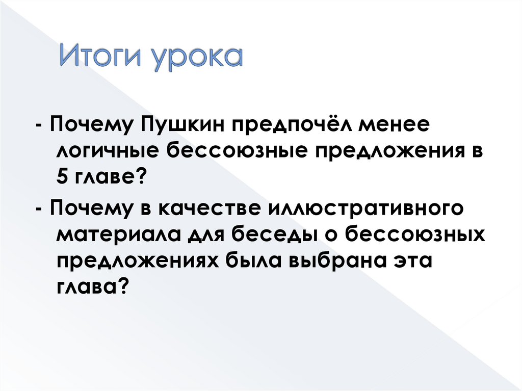 - Почему Пушкин предпочёл менеелогичные бессоюзные предложения в