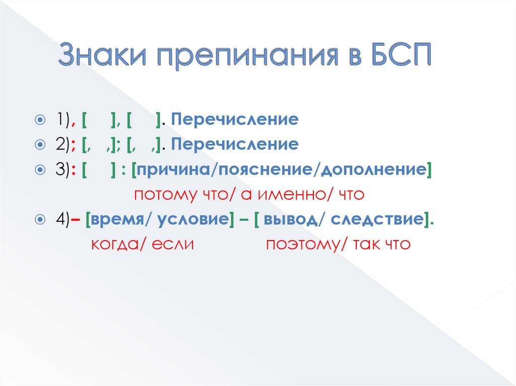 1), [ ], [ ]. Перечисление2); [, ,]; [, ,]. Перечисление