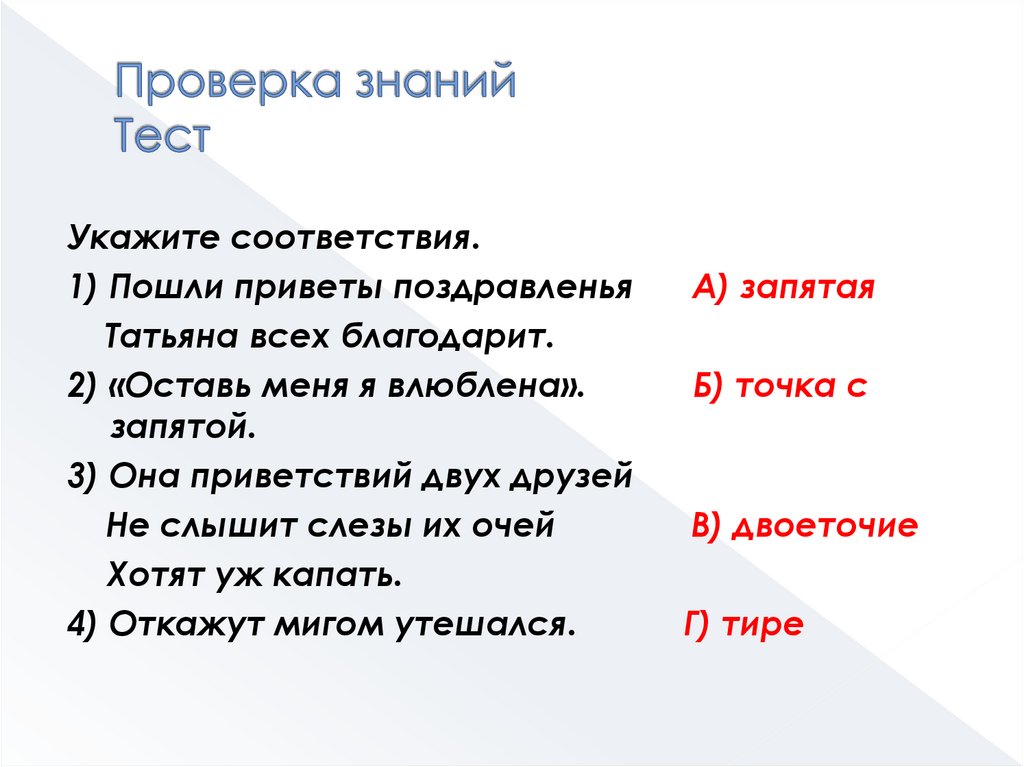 Укажите соответствия.1) Пошли приветы поздравленья