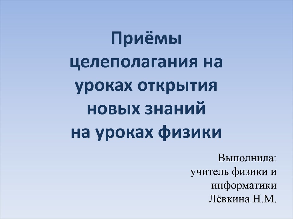 Приёмы целеполагания на уроках открытия новых знаний на уроках физики