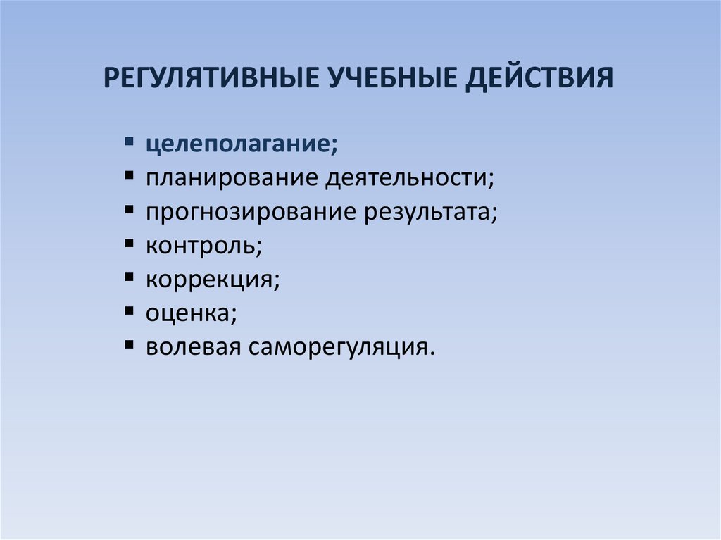РЕГУЛЯТИВНЫЕ УЧЕБНЫЕ ДЕЙСТВИЯцелеполагание;