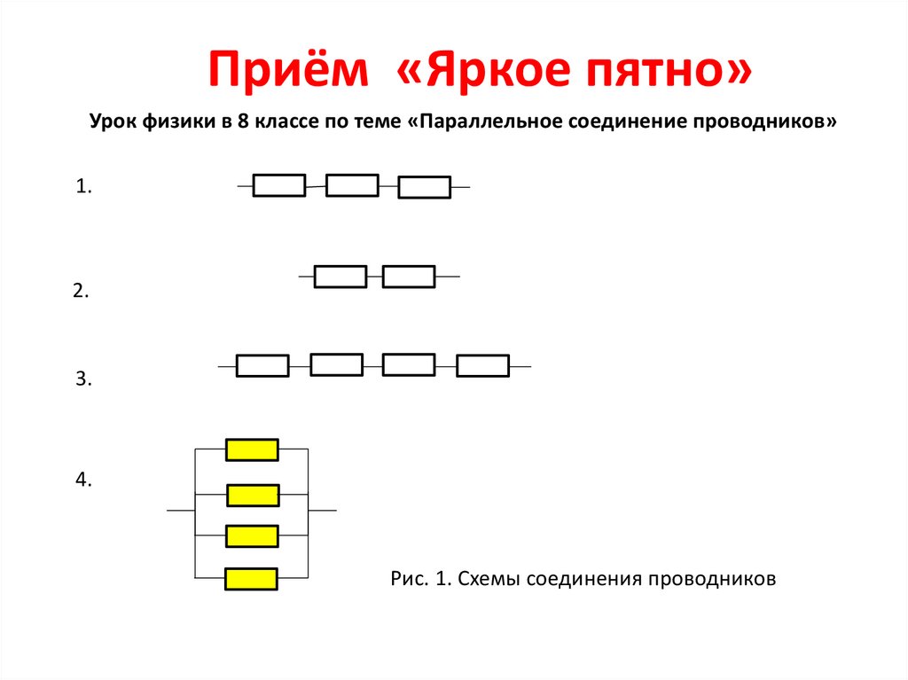 Приём «Яркое пятно»Урок физики в 8 классе по теме «Параллельное соединение проводников»