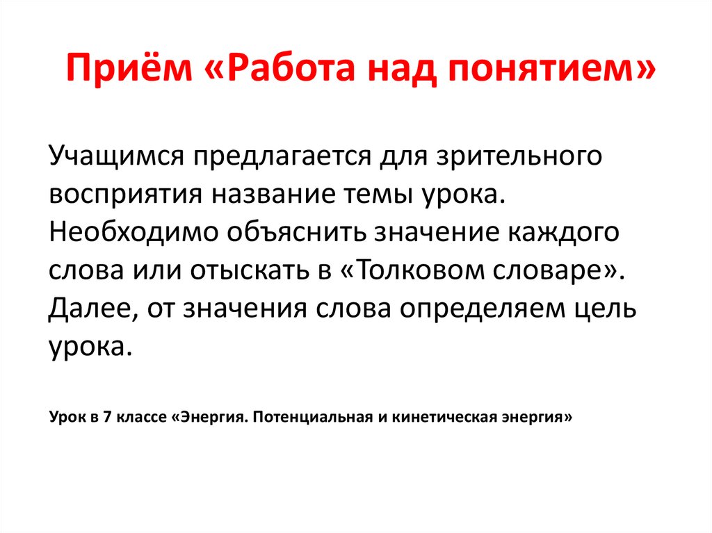 Приём «Работа над понятием»Учащимся предлагается для зрительного