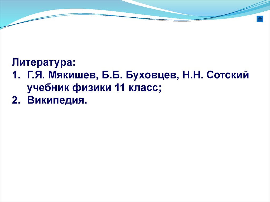 Литература:1. Г.Я. Мякишев, Б.Б. Буховцев, Н.Н. Сотский