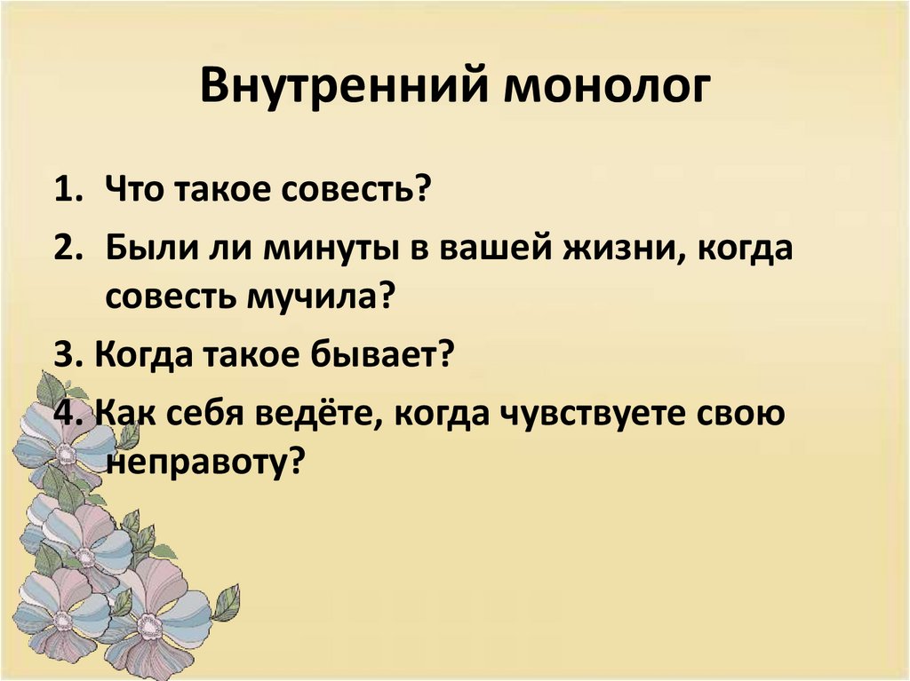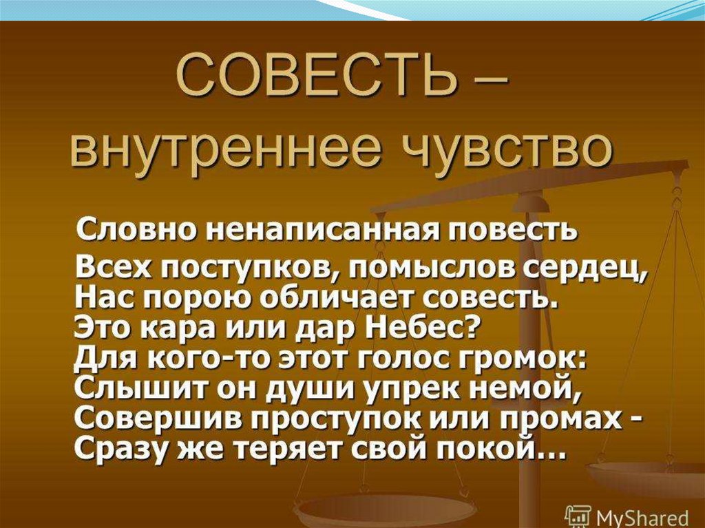 СОВЕСТЬ – внутренняяоценка, внутреннее
