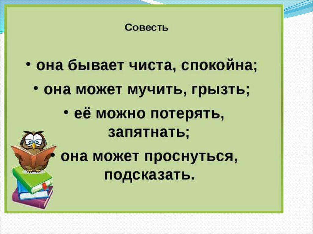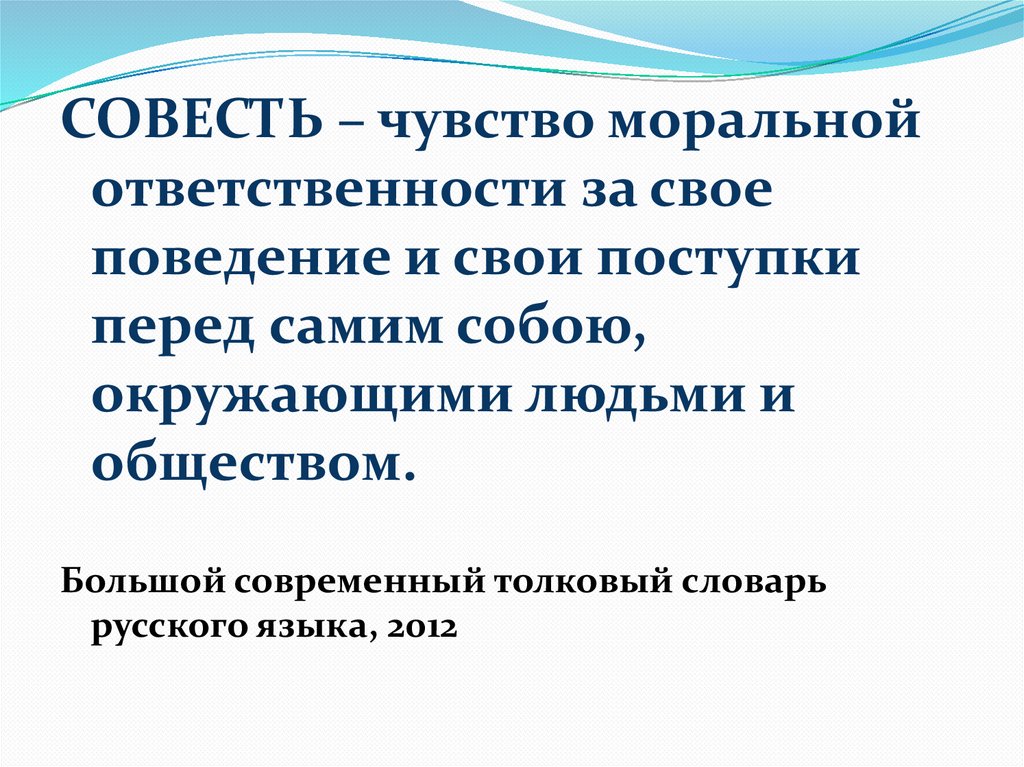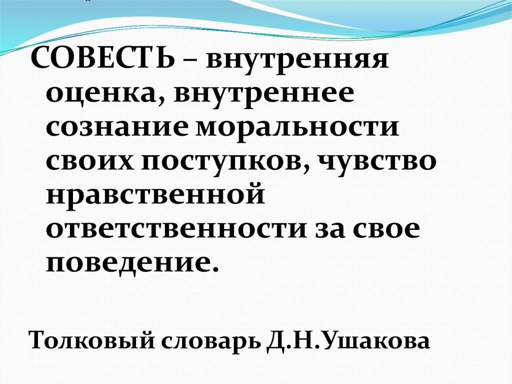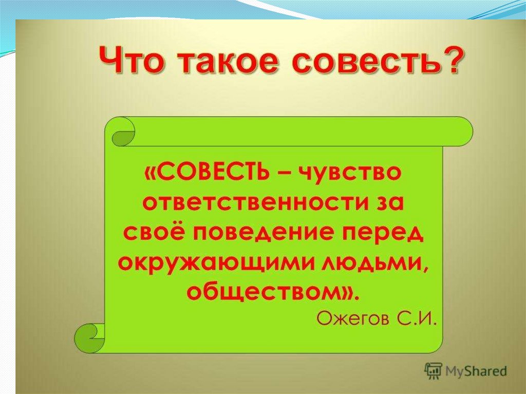 СОВЕСТЬ – чувство моральнойответственности за свое