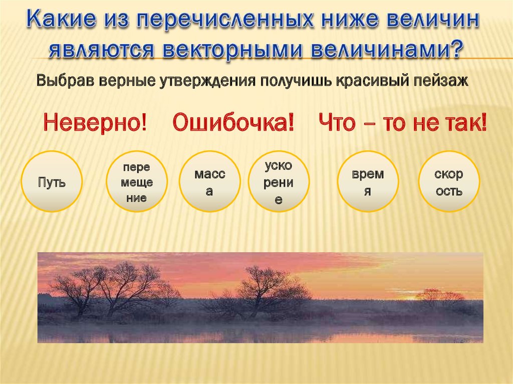 Выбрав верные утверждения получишь красивый пейзажНеверно! Ошибочка! Что – то не так!