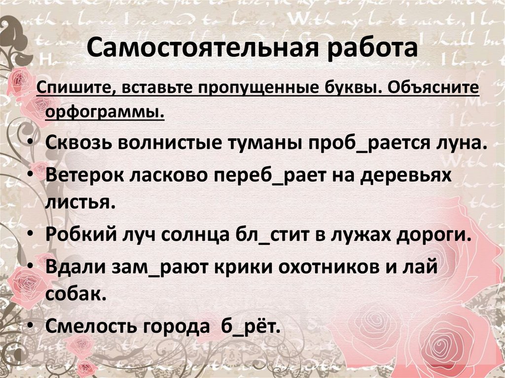 Самостоятельная работаСпишите, вставьте пропущенные буквы. Объясните