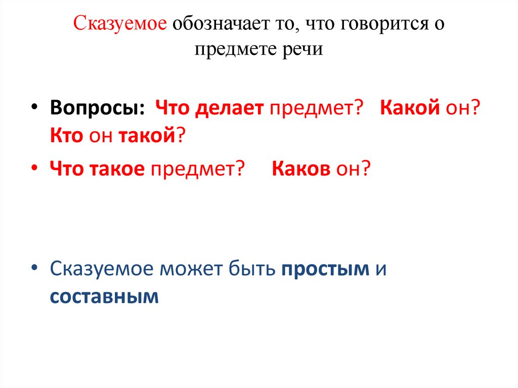 Сказуемое обозначает то, что говорится опредмете речи