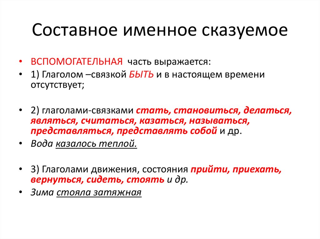 • 2) глаголами-связками стать, становиться, делаться,