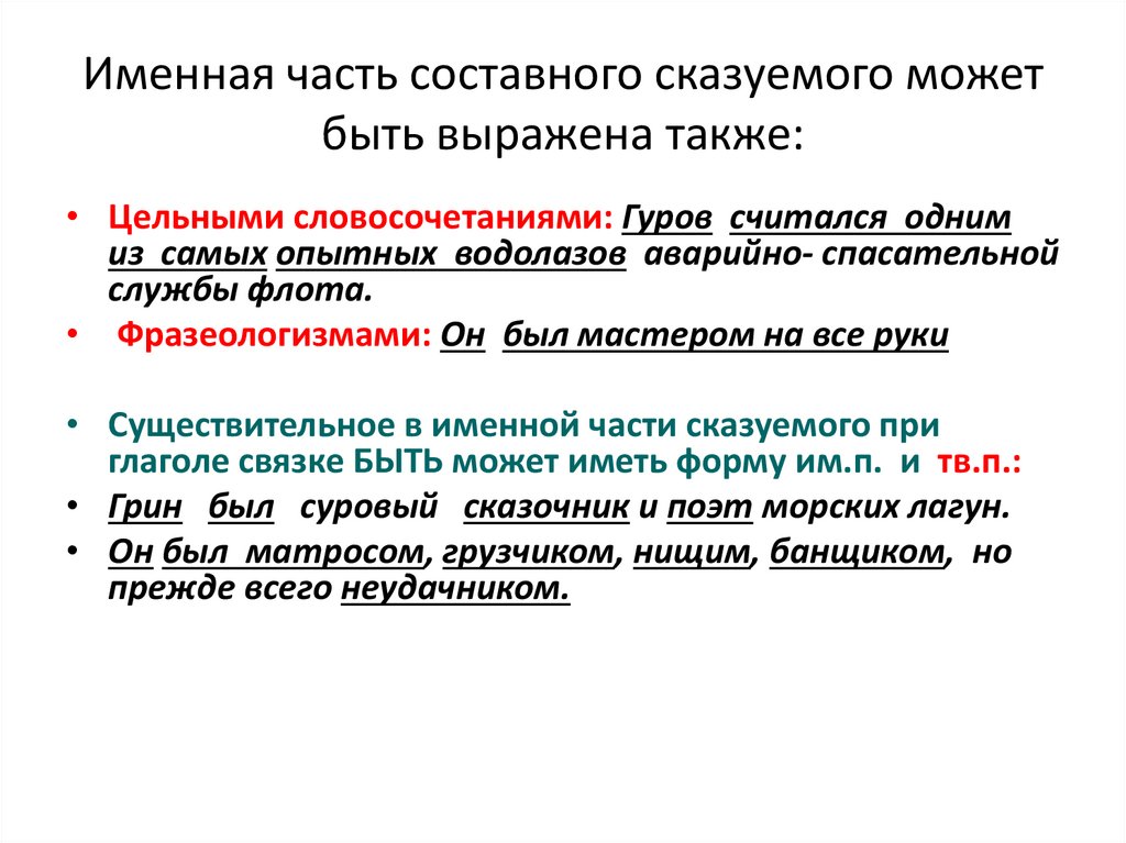 Именная часть составного сказуемого можетбыть выражена также: