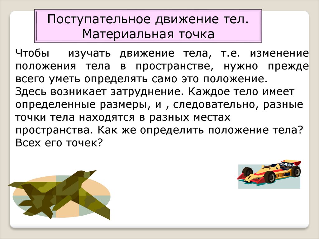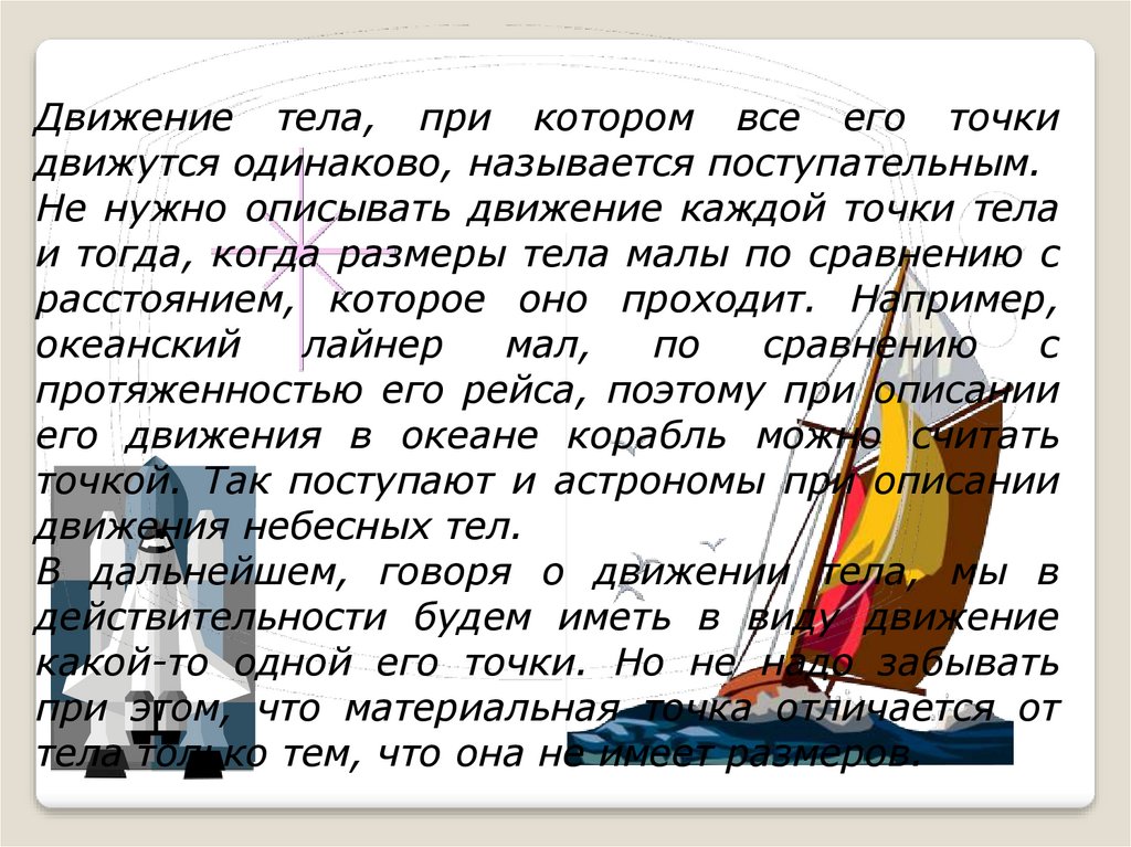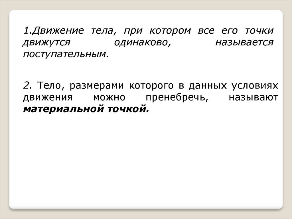 Движение тела, при котором все его точкидвижутся одинаково, называется поступательным.
