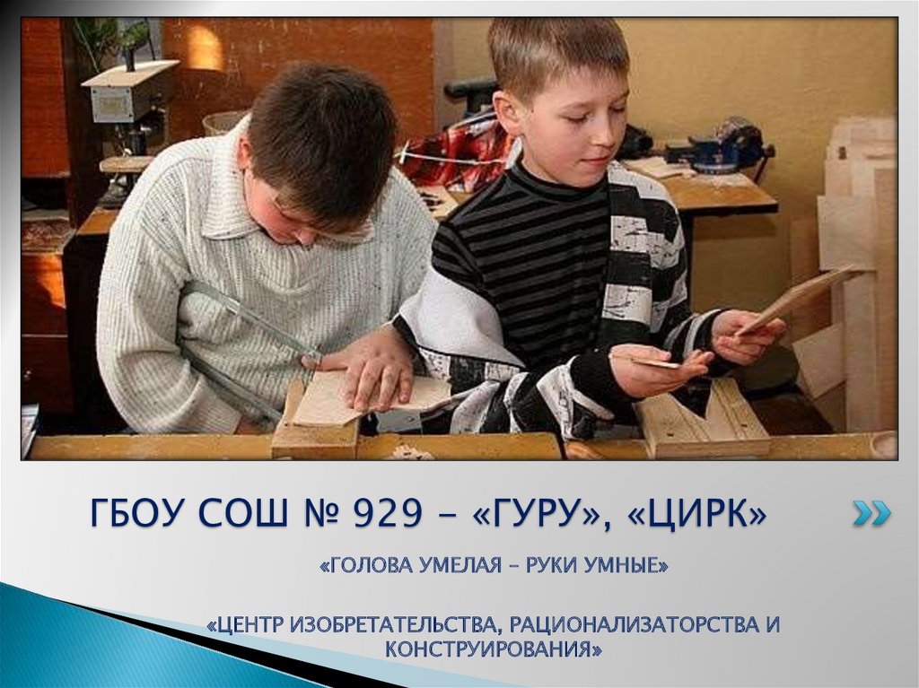ГБОУ СОШ № 929 - «ГУРУ», «ЦИРК»«ГОЛОВА УМЕЛАЯ – РУКИ УМНЫЕ»