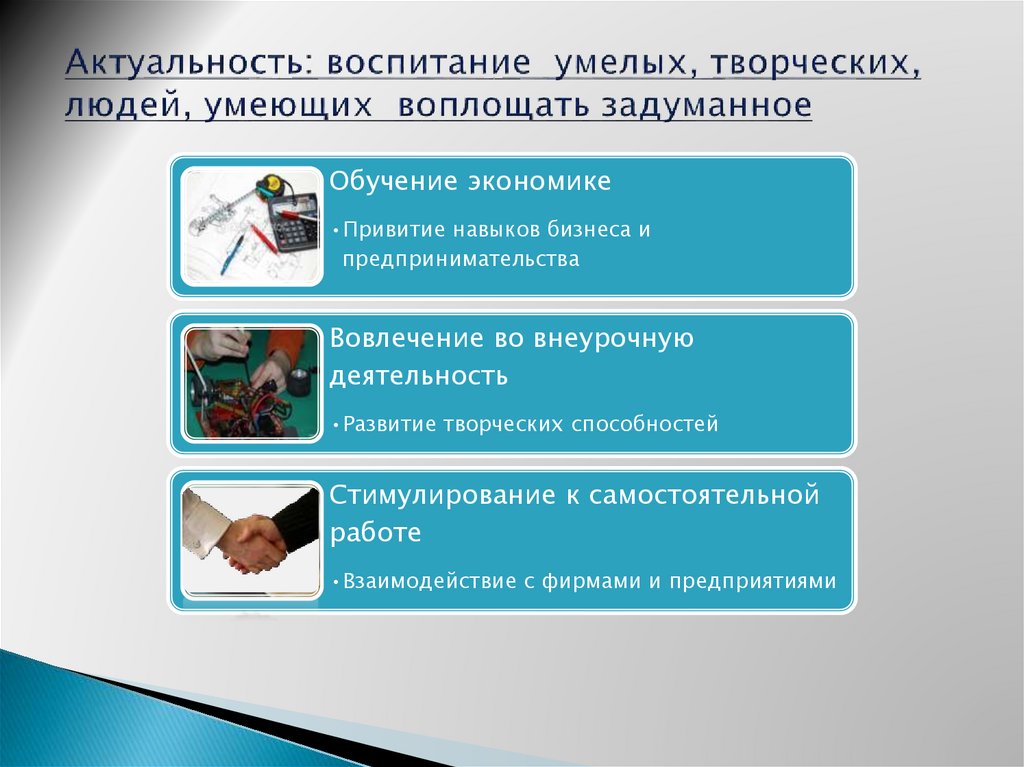 Обучение экономике•Привитие навыков бизнеса и