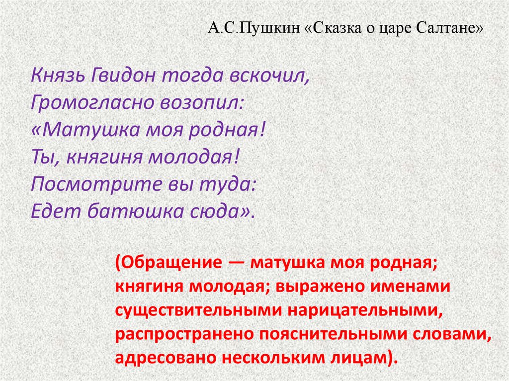 (Обращение — матушка моя родная;