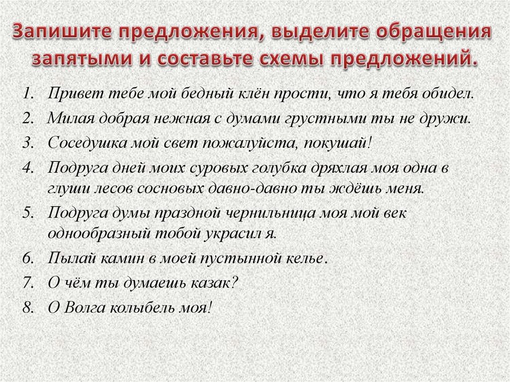 повторяющееся; обращение — милый,