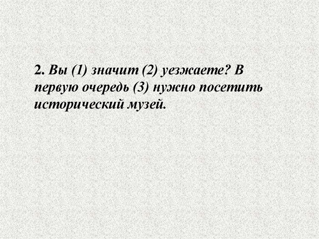 2. Вы (1) значит (2) уезжаете? Впервую очередь (3) нужно посетить
