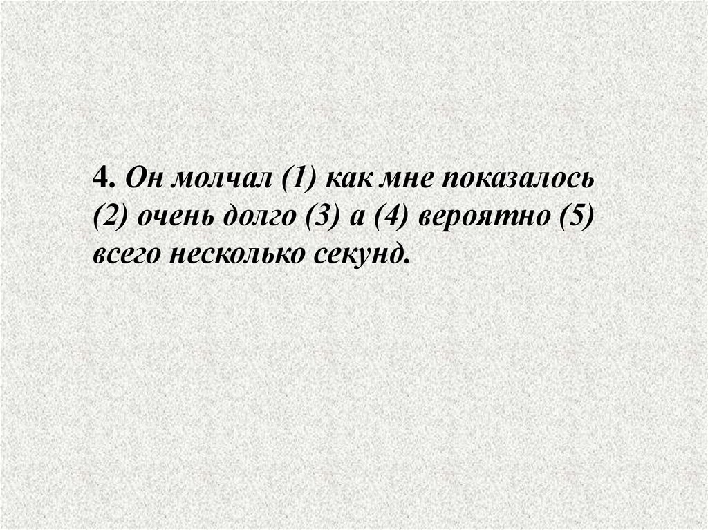 4. Он молчал (1) как мне показалось(2) очень долго (3) а (4) вероятно (5)
