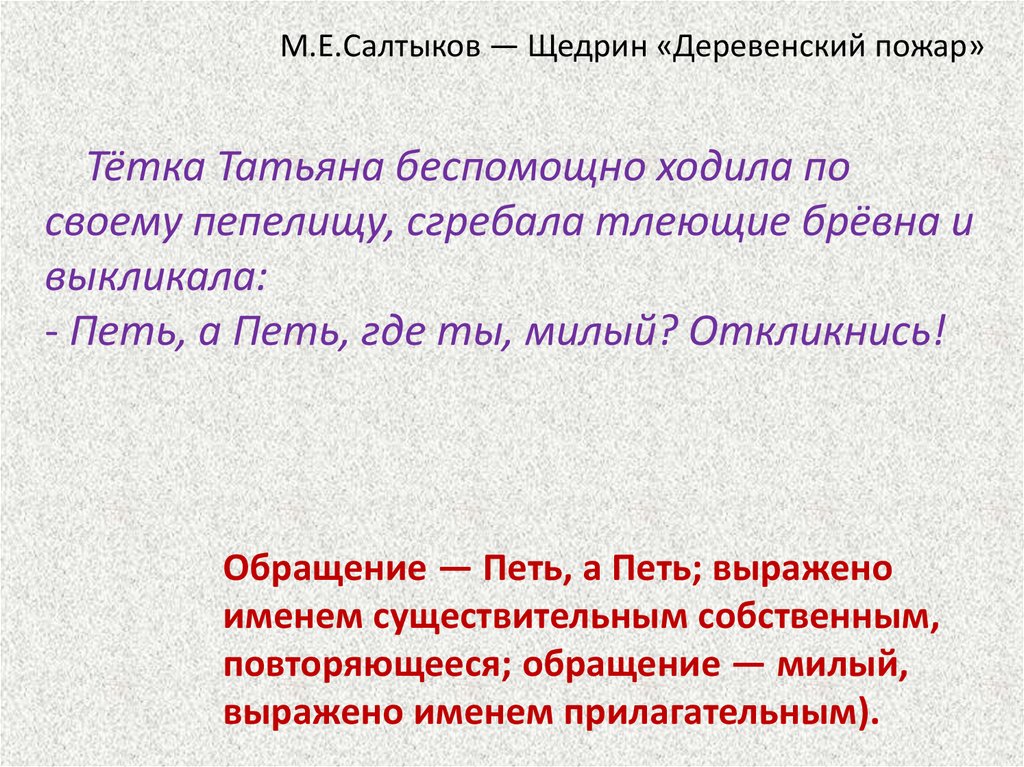 М.Е.Салтыков — Щедрин «Деревенский пожар»Тётка Татьяна беспомощно ходила по