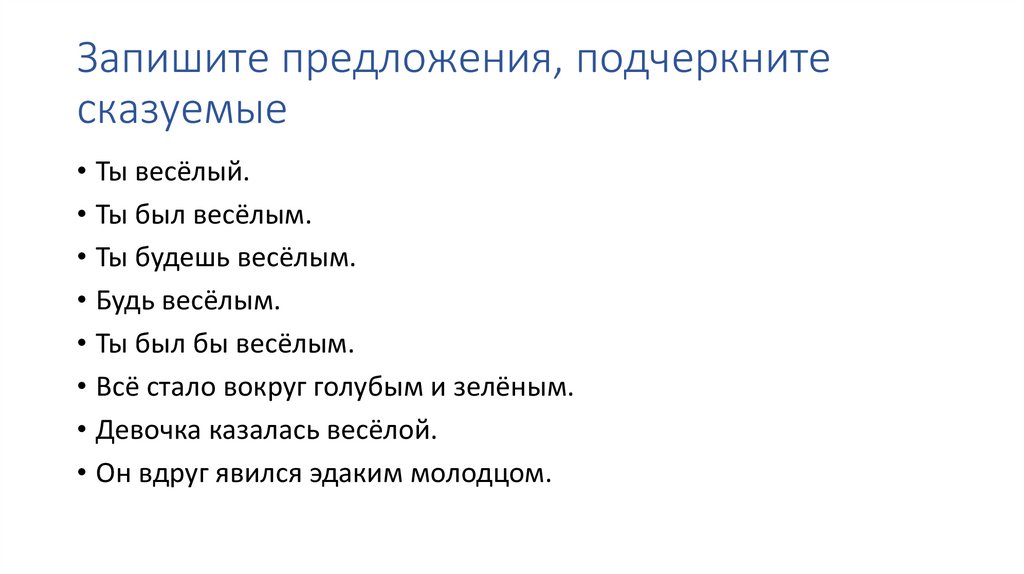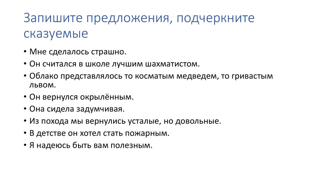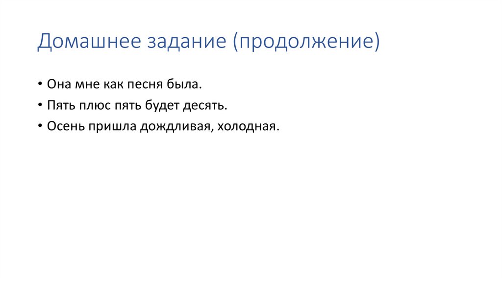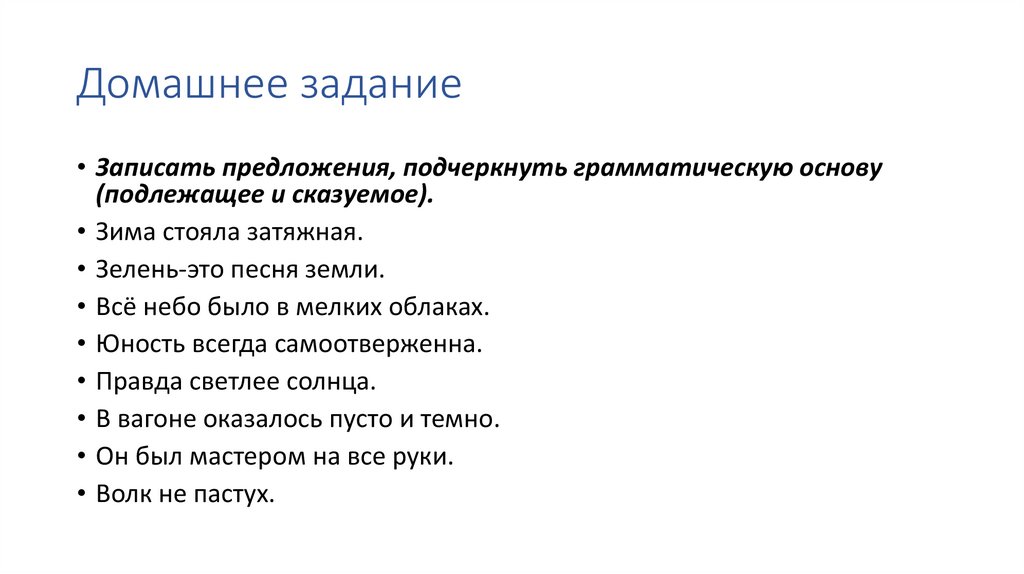 Домашнее задание• Записать предложения, подчеркнуть грамматическую основу