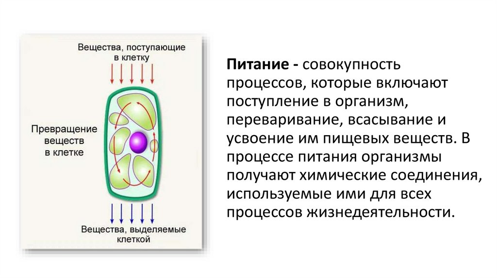 Питание - совокупностьпроцессов, которые включают