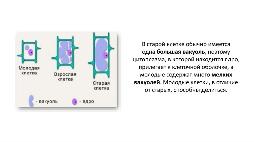 вакуолей. Молодые клетки, в отличие