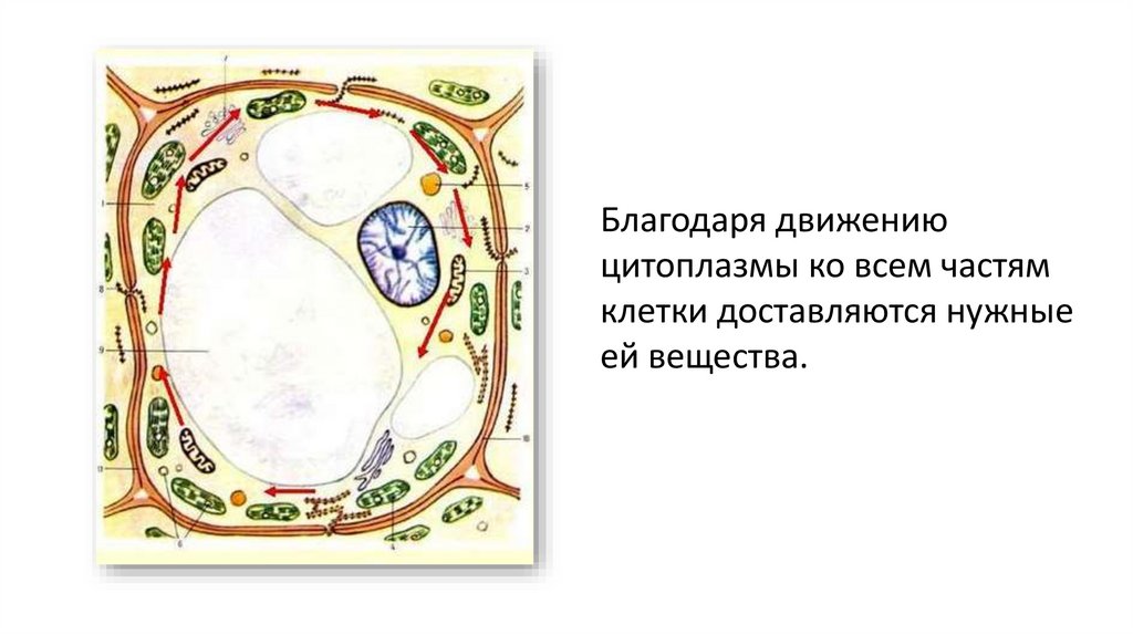 Благодаря движениюцитоплазмы ко всем частям